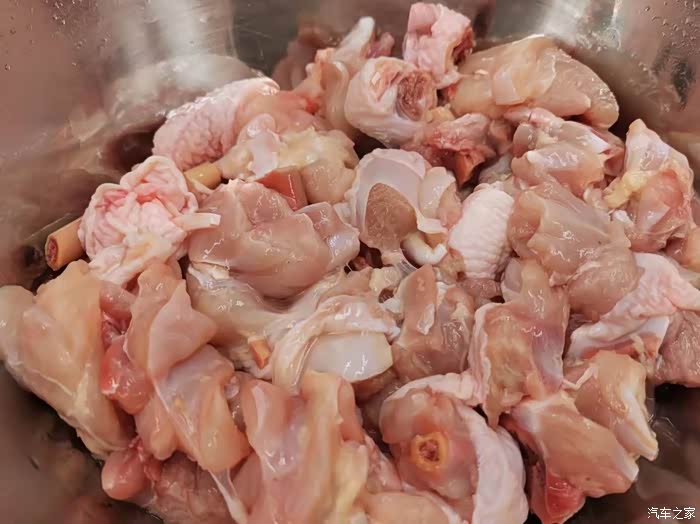碗中装水,把鸡肉放水中浸泡,把鸡肉中的血水给泡出来,鸡肉中的的血水少了,那么鸡肉的腥味自然也就小了,在浸泡的过程中最好换水2-3次,这样才能保持水的干净度,出来的效果就好。