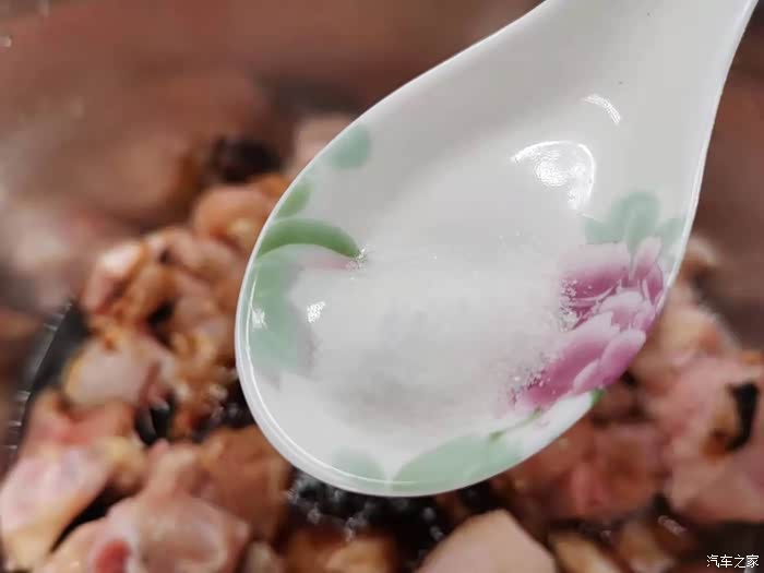 加入2克的盐,注意盐不能加多,因为蚝油、柱候酱、生抽都带有咸味的,所以盐只需加入少许即可。