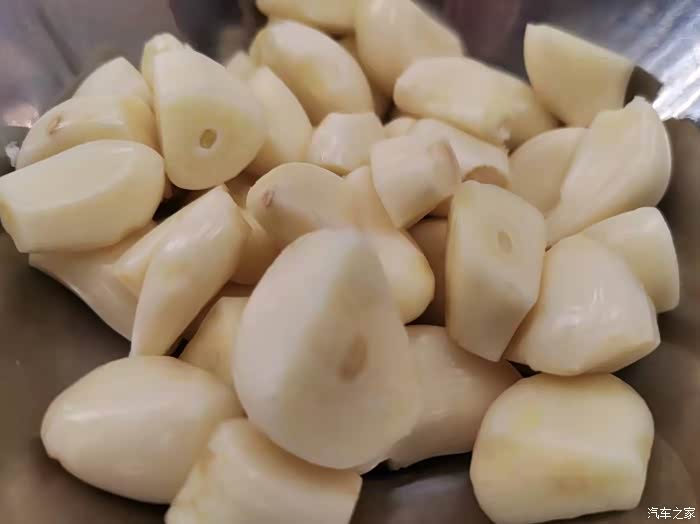 蒜子去外皮后清洗一下,从中间切上一刀一开二即可。蒜子可以起到增香的作用。