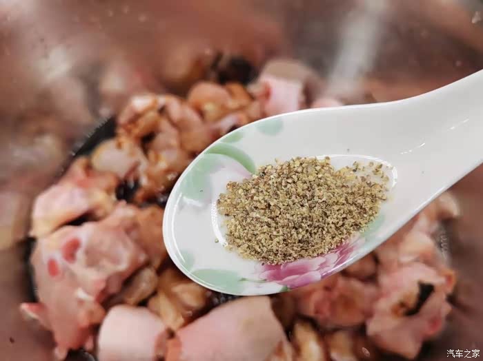 加入2克的胡椒粉去腥提香。