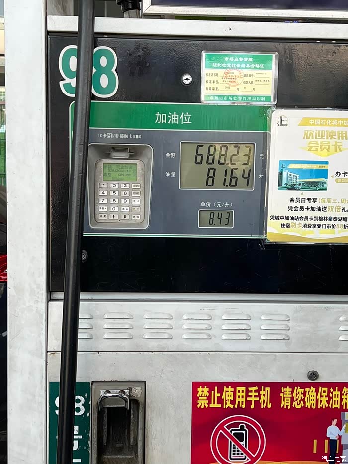 不想在店里久待了,为了防止这种情况再发生,赶紧去加油站喂粮食。第一箱油,98号,真贵…