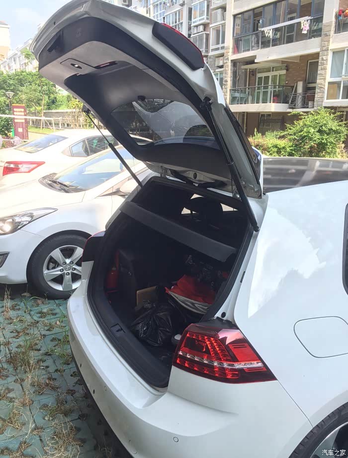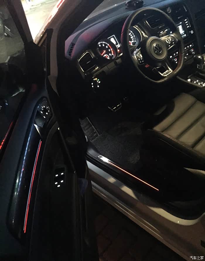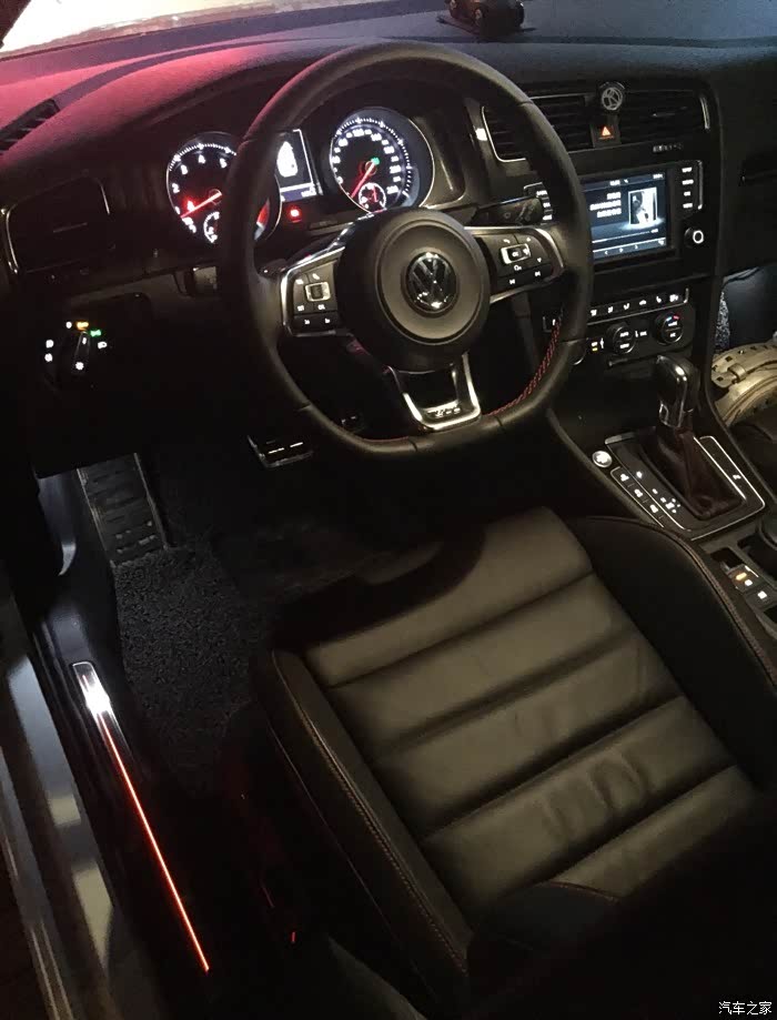 外观内饰:外观我很喜欢,尤其是那贯穿车头的红线,还有那18寸战斧式轮毂,本人喜欢的不得了!虽然停车技术到家了,但是现在侧方停车,我还是喜欢把头伸出去看看碰不碰的到轮毂,如果刮到了,对于强迫症严重的我来说,绝对忍不了。。。。除了以上这2个特色点,其他外观部位不仔细看,还真是无异于普通高尔夫啊,甚至是POLO(遇到好几个“识货的”说我这车是POLO)。