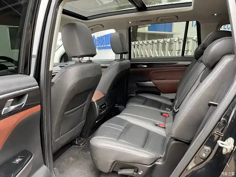 这款车车身超5米,轴距直逼2.92米,2+3+2的七座布局堪称家庭出行利器。前排驾驶位宽敞开阔,调整好坐姿后,头部和腿部余量充足,长时间开车也不憋屈。第二排地板纯平,还能前后移动140mm,老人孩子坐在后排,跷腿、伸腰都自在。第三排虽然更适合短途应急,但进出时只需扳动第二排座椅拉手就能轻松进出,全景天窗的加持也让后排不显得压抑。后备箱更是灵活,常规状态下能放下几个登机箱,把第三排座椅电动放倒后,容积直接拓展到1859L,露营装备、大件行李都能轻松装下。