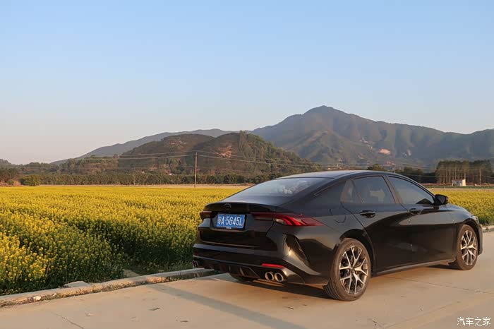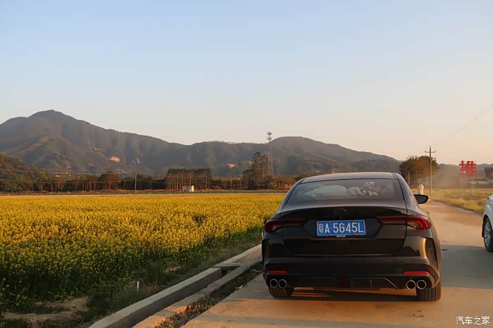 我找了一处开阔的地方,将影豹停在油菜花田旁边。黑色的车身与金黄的油菜花形成鲜明的对比,在阳光下显得格外耀眼。好友们纷纷赞叹:"这车停在这儿,简直就是一道靓丽的风景线!"
