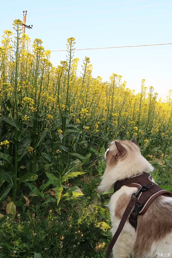 我迫不及待地给好友们发了消息,约他们一起去郊外看油菜花。不一会儿,大家就纷纷回复,表示十分期待。我收拾好行装,给小猫"雪球"戴上它最爱的红色项圈,又检查了一遍它的专属座椅——那是一个柔软的小窝,固定在影豹的中控扶手上,既安全又舒适。