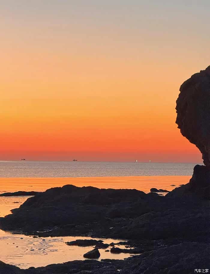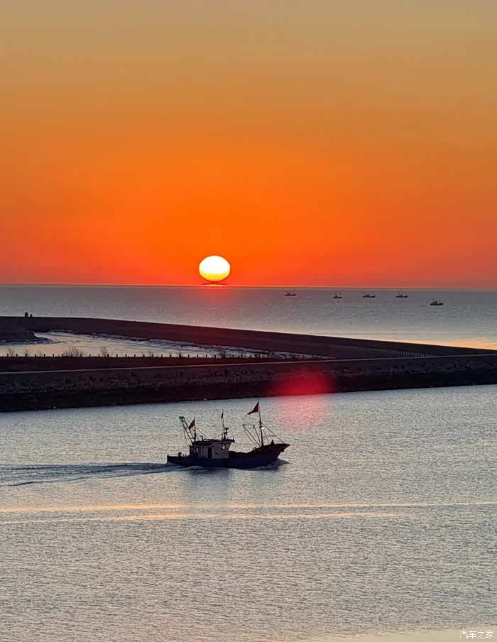 凌晨马路上几乎没什么车,一路绿灯更让我心情大好,上了高速更是一路飞奔,提前很长时间到的目的地。晚上还是挺冷的,看时间还早在车里躺着刷会手机,差不多了套了两个外套才出来,没一会儿就看到了海天相接处红日破晓而出,一瞬间光芒万丈波光粼粼,如梦如幻。
