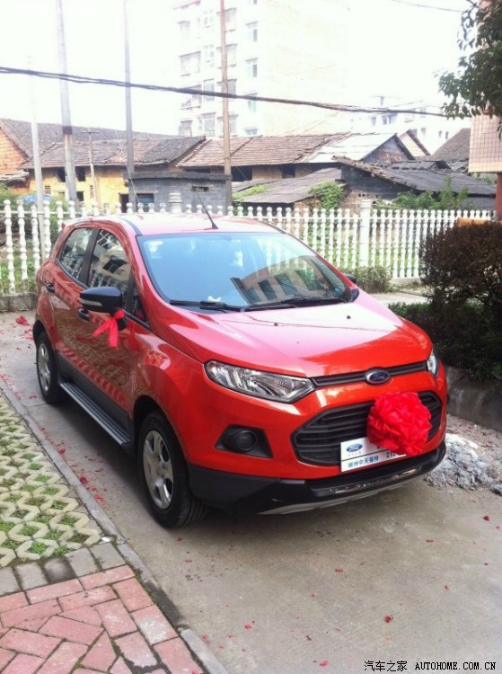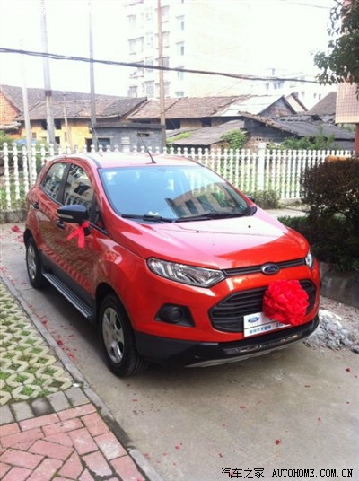 70后的工薪一簇说起买车还是意料之外的事,但是心里还是想拥有一台属于自己的座驾,10月1号,郴州车展,单位正好休息,便和老婆逛逛街。正好去车展随便看看,听说福特的车口碑一直不错,既然来了,就挨个试试感觉,什么经典福克斯,新福克斯,嘉年华,坐里面那空间真不大,这几种车型低配版的头都挨到车顶,坐垫不好高低调节,即使高配的总感觉3箱车视野没有SUV的好,我1米76,85公斤,坐里面感到特别压抑,再往前走2步,被一张大嘴吸引了我,问问销售人员,介绍说是今年新生产的翼搏,这款是1.5升手动舒适版版的,我真的被它的外表迷上了,可以说是一见钟情啊!销售说提现车要加价10000装潢才行,当即和老婆商量了下,交了10000定金,定下了那款车展上手动低配版的星火红翼搏,第二天准备好现金直奔车展交款,带上大红花娶回家咯~~~~~~~