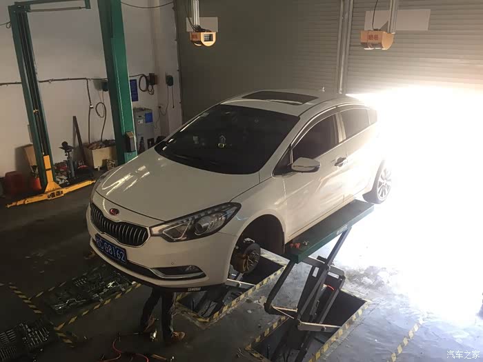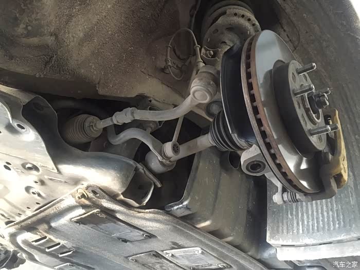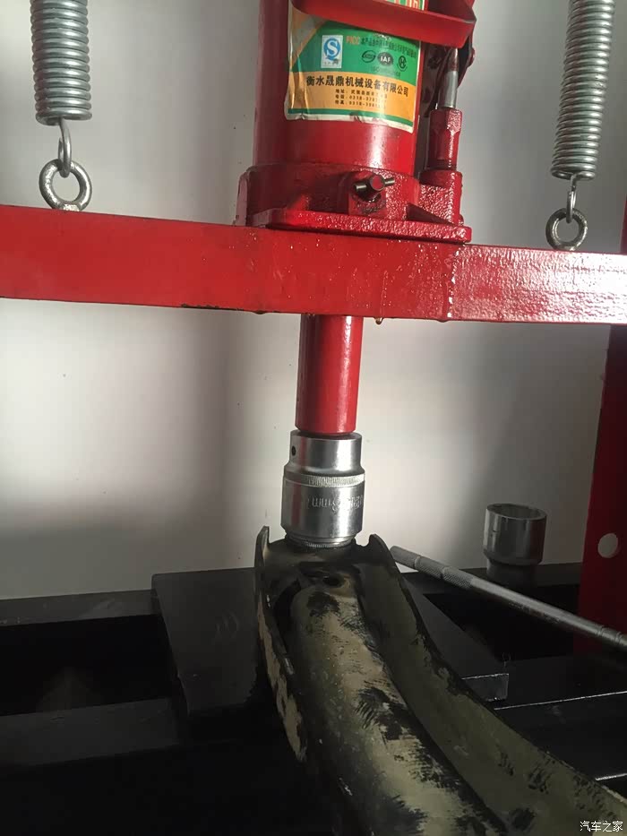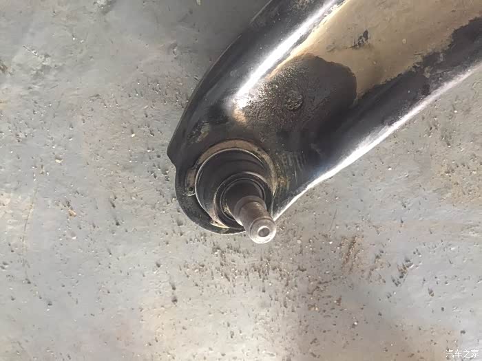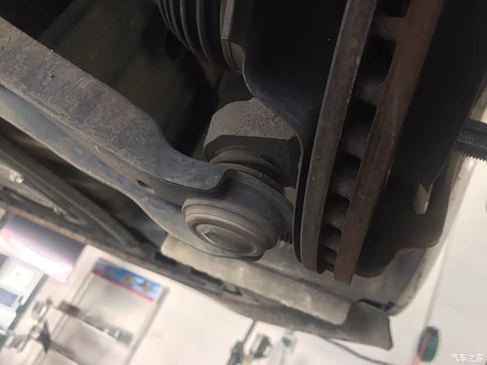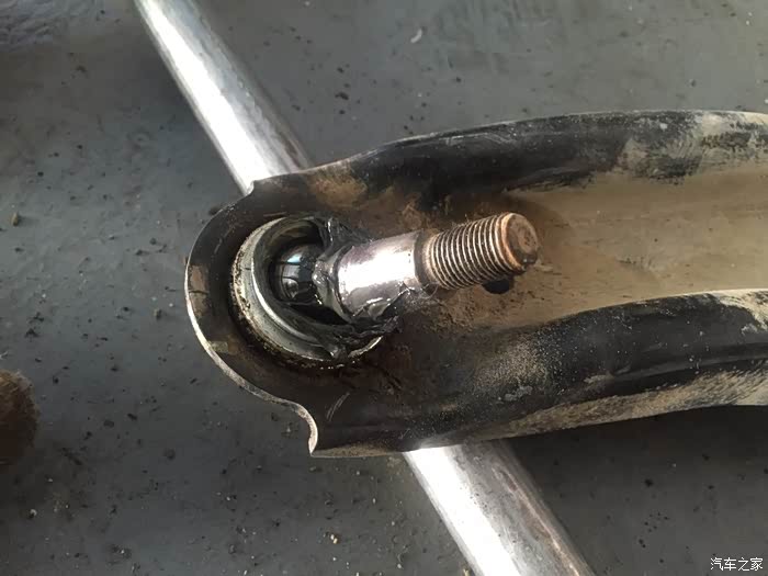 13年购买了车,目前行驶大概44000公里了,走搓衣板路面或者碎石多路面等路况较差路面时,车头部位会传来嗒嗒声,方向盘都明显感觉有震动,检查疑似前摆臂球头松动引起,就在淘宝自行购买了一对球头,价格是带运费82,收货对比和原厂件是一致的,今天周末马上就到朋友的修理店更换,整个过程大概2小时,其实拆下来的球头没有明显的松动现象,貌似不是这个问题,呃.......等有空了再专门找一段路况差的路面试一试吧。目前还不能确定已经解决这个问题,本次维修仅供参考吧。上升降机,拆下了个前轮。前避震筒还没发生漏油。球头就是这个圆形的东西。球头特写,上面有logo和钢印打码。要拆下来摆臂才方便更换球头。卸下球头上的...