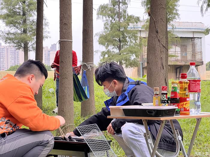 特地邀请来2位就近的车友一起参加(因为他们刚好休息),到了目的地(导航乐从水利站),进去里面就开始各部门的现场布置。一边准备开烤炉生火,一遍摊开桌放置我们准备好的食材。