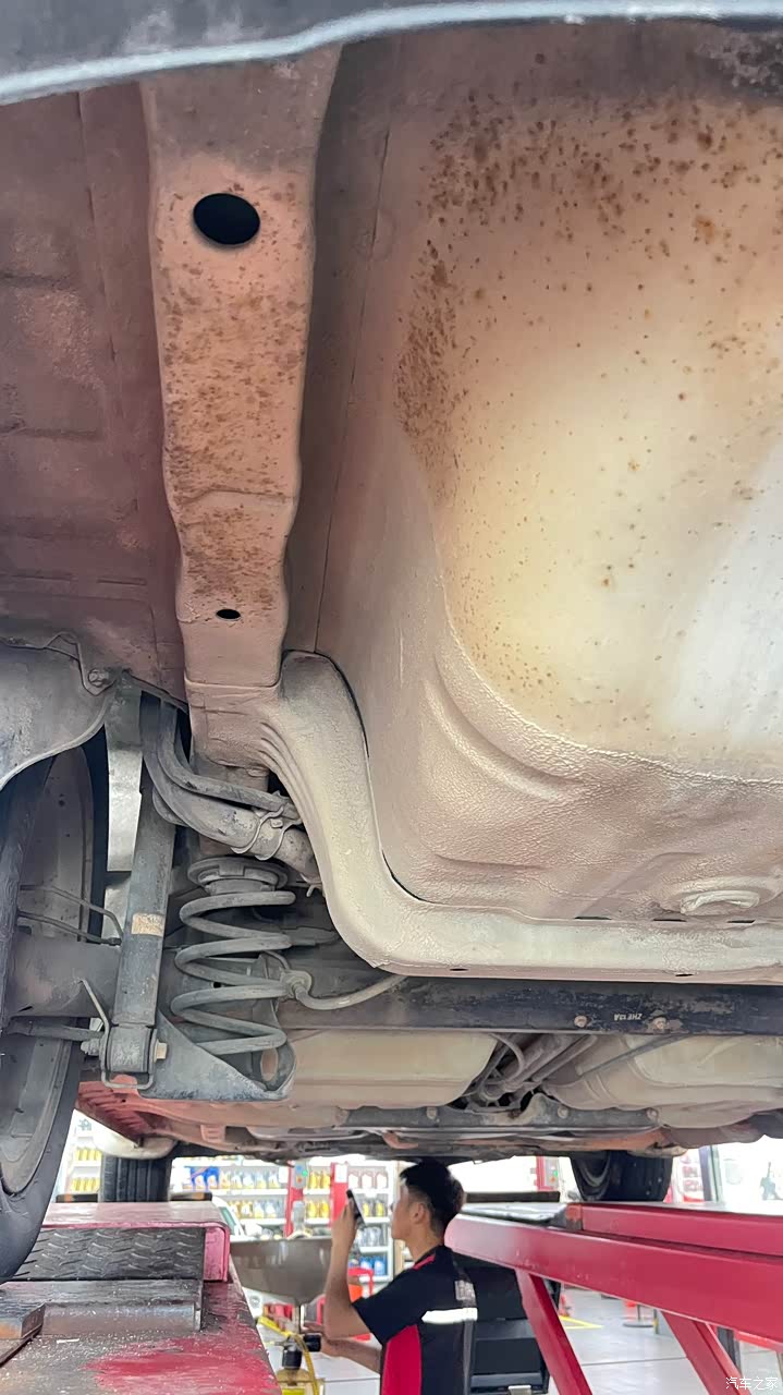 这台车子去年从广东过户来厦门,有次洗完车发动后发现仪表台有似流水声,查阅资料说是冷却液少了,立马检查一下冷却液状态,好家伙,副水壶都看不到液位啦,打开水壶盖一股酸爽扑面而来,立马着手准备更换,在途虎上看到有活动,百适通4kg加工时不到100块,立即下单,到了店里,小哥说日本车不需要换冷却液的,不知道是不是真的为我好,反过来让我去清洗空调蒸发箱,不知道是不是也是为了我好,更换过程就不描述了,小哥有点有气无力,可能看我这是一台破车吧,然后换完直接到隔壁年检站检车,刚换的冷却液效果肯定比之前发酸发臭的好,也不怕暴力年检了,最终一把过。顺带说一嘴,这车在广东天气条件确实比沿海的好,底盘都不带生锈的!