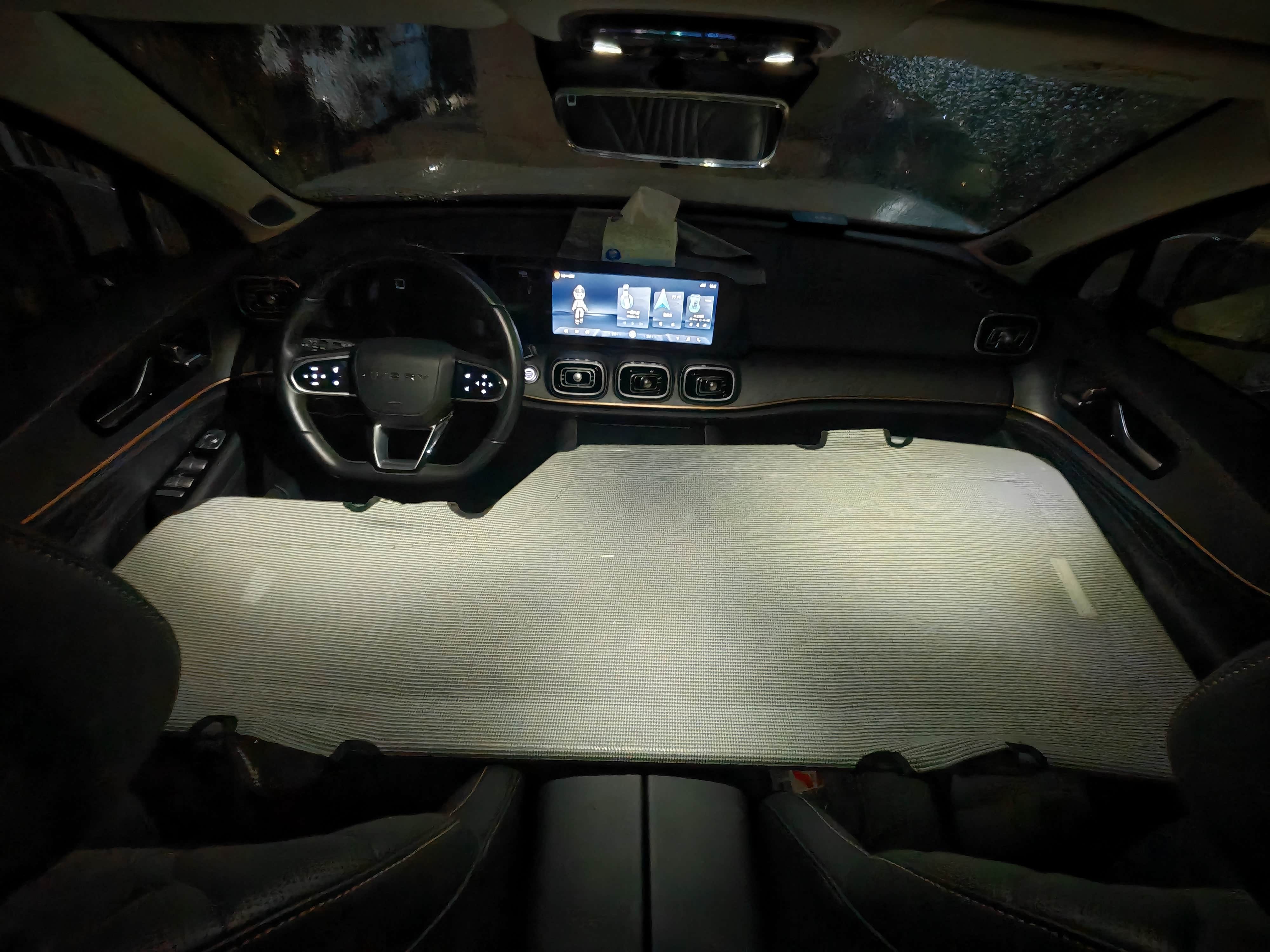 我是在网上买了一个瑞虎9后备箱专用垫,在铺了一个毛毯加被子,两个人睡一点都不挤