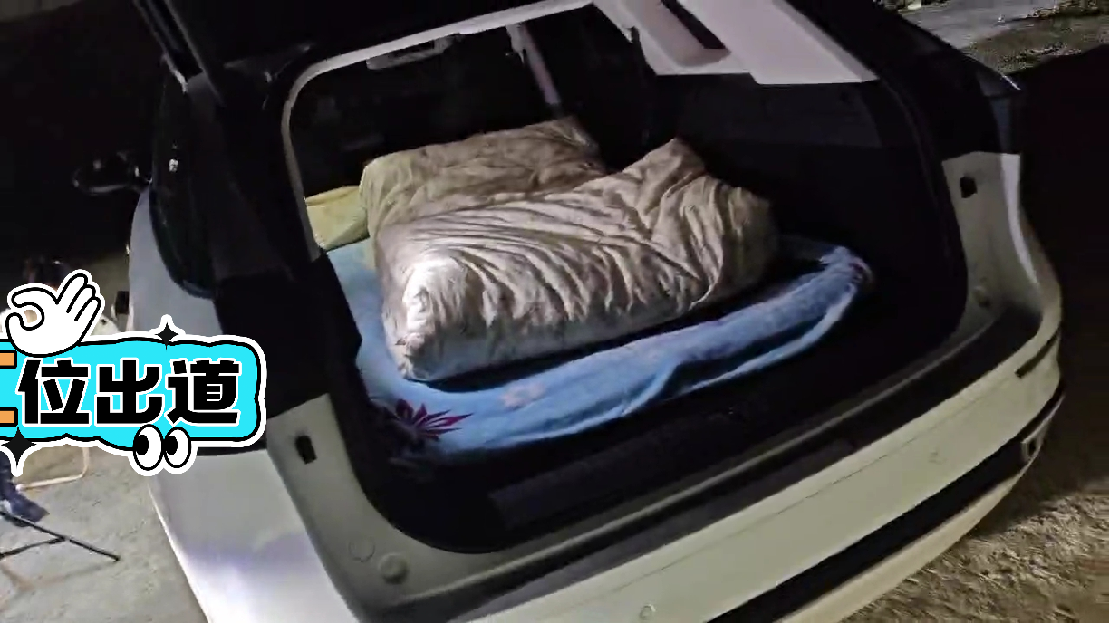 一家三口睡后排我感觉太挤了,前排的话给我宝宝弄了一个小床。我跟她老婆直接睡后备箱,空间完全利用到位!