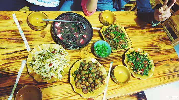 三菜一汤吃了装莽...所以必须整四个菜...客栈伙食不错,没有菜单,直接去厨房,有什么菜就指给老板,老板按当地特色给你做菜。当地特色有田螺肉,紫洋芋,什么虫(就是下面那个),早餐特色饵丝(有点像米粉,口感更棒!)
