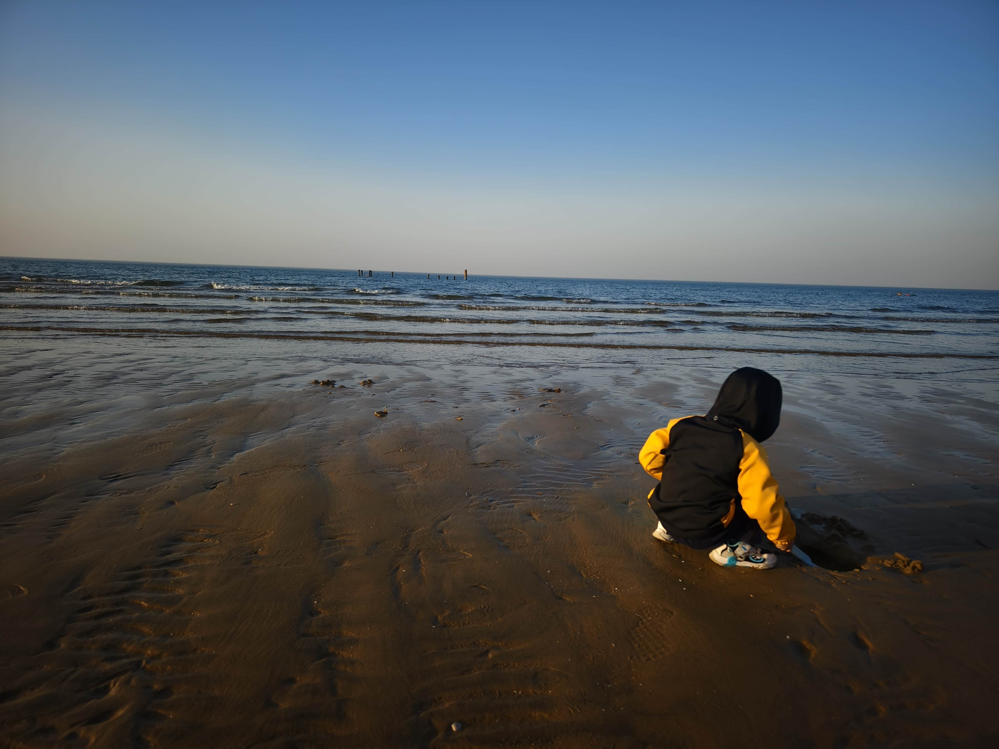 九月去烟台开发区参观文化中心,感受新时代科技色彩与开发区简介,面朝大海读一本书,下午商场里面参观爬虫展,可以轻轻抚摸小蜥蜴,看见里面各种爬虫观察的很仔细,傍晚去海边去挖沙挖小螃蟹,感受有一丝冷意的风,别人给了一些小鱼和小螃蟹,更多的是感受自然的魅力,而我们更多的是参与其中,带着他各种玩,欣赏海天一色。