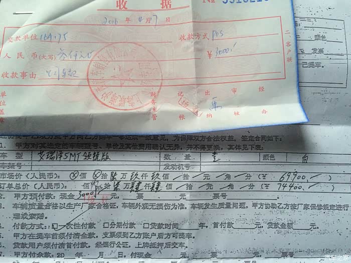 订车:4.17拉着我舅到奇瑞4S订车,反正已经研究很久了,没多少废话,直接谈价,约定提车时间,直接送一些东西我也没开口要!