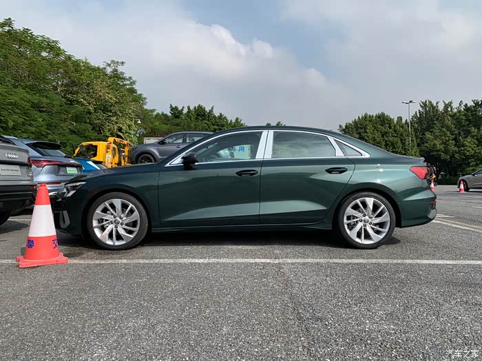 奥迪A3L采用了近乎于轿跑车型的运动风格,其中前后轮拱造型突出,同时车身中段采用内凹式线条设计,使得整车侧面线条丝毫不平庸。同时,两侧大尺寸进气口,也加强了该车的动感气息。