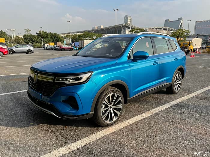孤伶伶在一旁的荣威RX5 MAX,贯穿式的日行灯最近很流行呀