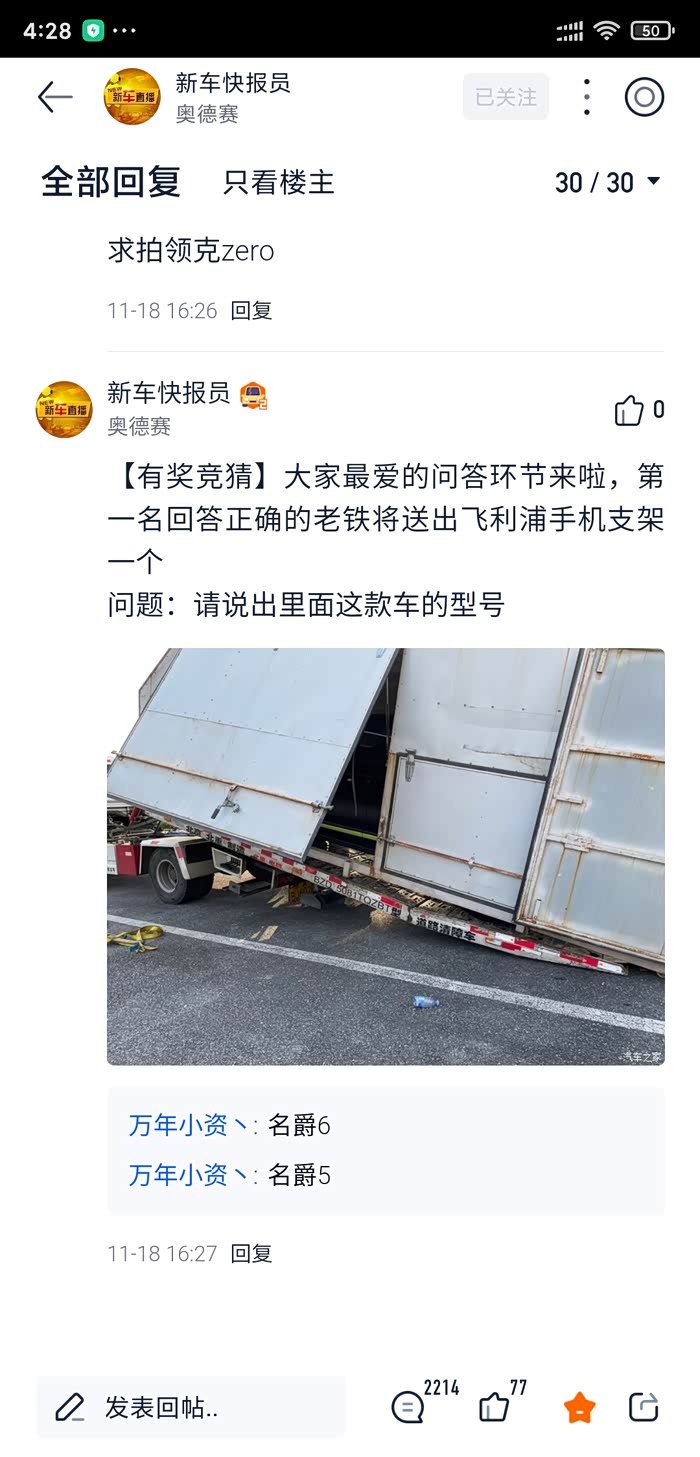 互动有奖问答,看图猜车。第一个回答正确的车友,可以获得汽车之家定制钥匙扣一枚。