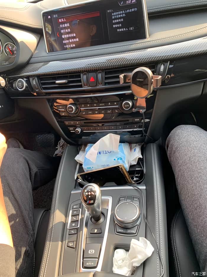 照片我尽力多奉献了一些,内饰真的亮点不多,并且这辆还配的黑色内饰,缝线和真皮时刻告诉着你他的价值,碳纤维也在提醒你该冲动驾驶的时候不要向生活妥协。简单点评一下驾驶感受,因为没出磨合期,就没太敢暴力驾驶,主要年龄渐长胆子越来越小,别人的车还是爱惜的好。这辆X6M因为四驱缘故,所以比较好驾驶,不会在湿滑的路面深踩油门出现侧滑或甩尾,首先会让人特别有安全感特别从容。另外,悬架阻尼,油门灵敏度,底盘状态都可以四项调节,sport ,sport plus,comfort以及自定义。因为驾驶水平有限,又是在公路上,并不敢关闭esp,换挡拨杆后边的小按钮也没研究,launch control肯定在性能车上是精髓,但是倡导安全驾驶的我并没有找到安全的路段可以体验很遗憾。但是V8T和575的账面数据还是给足了暗示,comfort三段深踩一样推背感满满,但并不是特别惊艳,主要是四驱太稳了,毕竟SUV先天劣势风噪这些问题摆在这里,眩晕感比电流机差好多,不过在我深度驾驶过的车里面,比较直观比较爽的是S65>X6M>帕美4S(老款3.0t双涡)