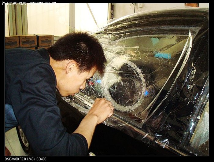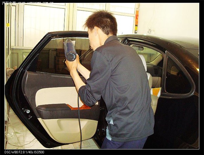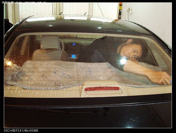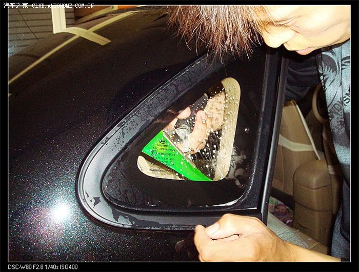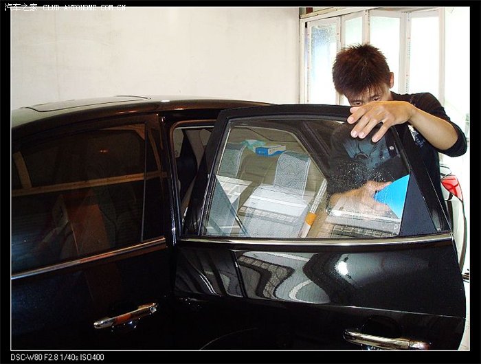 贴完后,开始洗车,然后就在各门控制车窗升降的位置用雷朋不干胶贴死,我就不上图了。现在看看我贴完后的效果吧