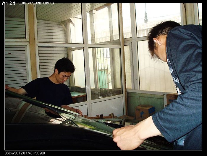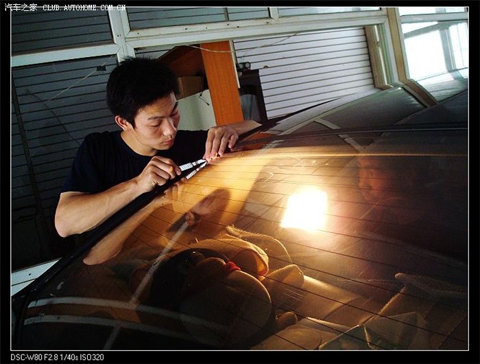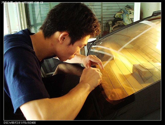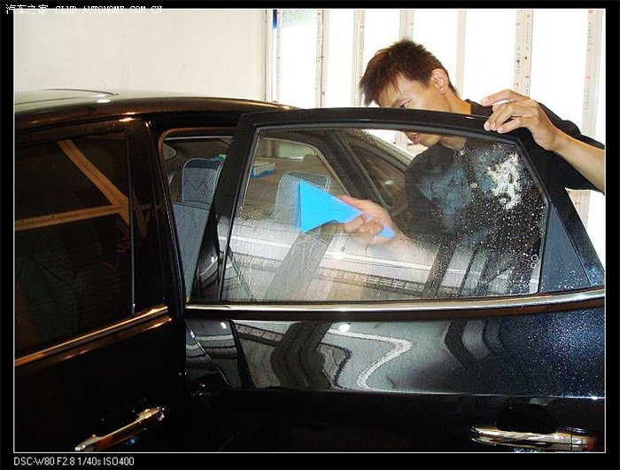 其他的两个侧窗也都如此类推,一样的工序。遗憾的是,后档在贴的时候,其中一个伙计出去了,我临时搭了把手,只拍下面一张,不过也是一个字:“刮”。贴前刮,贴后也刮,刮刮刮刮刮刮刮刮刮刮!