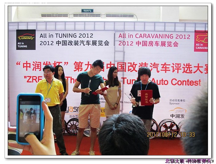 这个展览呢是评比和展览同时进行,在展览的最后一天上午,进行了改装车的评选颁奖仪式,我的紫色改装科鲁兹,以绚丽的车漆和吻合度极高的车身套件获得了这届评选“最佳外观改装奖”!这对于我来说是个很高的荣誉,虽然在汽车之家发了很多帖子,很多对我和我的车出言不逊,但是这次评选让我坚定了继续折腾我车的信念,让那些永远吃不着葡萄就说葡萄酸的人去屎吧!我就是外观党,我就不挂涡轮,我也不动发动机,我照样可以享受改装的喜悦!