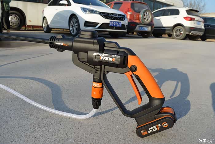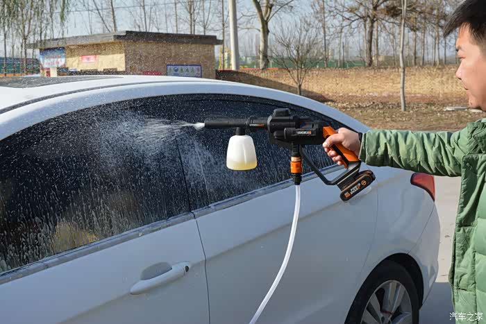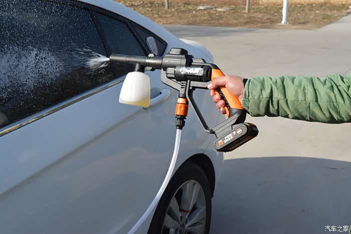但是仔细考量之后,还是感觉传统的洗车机不太实用,一是洗车场地没有方便的220V接线口,二是洗车机的用水量不小,在外面洗车,水源也是个问题。 再一个,普通家用洗车机体积不算小巧,随车附带肯定不现实,单元楼上搬来搬去也甚为麻烦。
