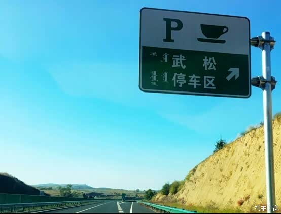 进入高速后,在呼朔高速上看到一个很特别的服务区——武松停车区。这个停车区不小,卫生间也很大,而且很干净。进入内蒙境内,高速上的牌子,就有蒙文的出现,很新鲜的感觉。路上几乎看不到什么车,这是真的哦!