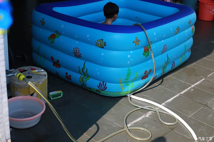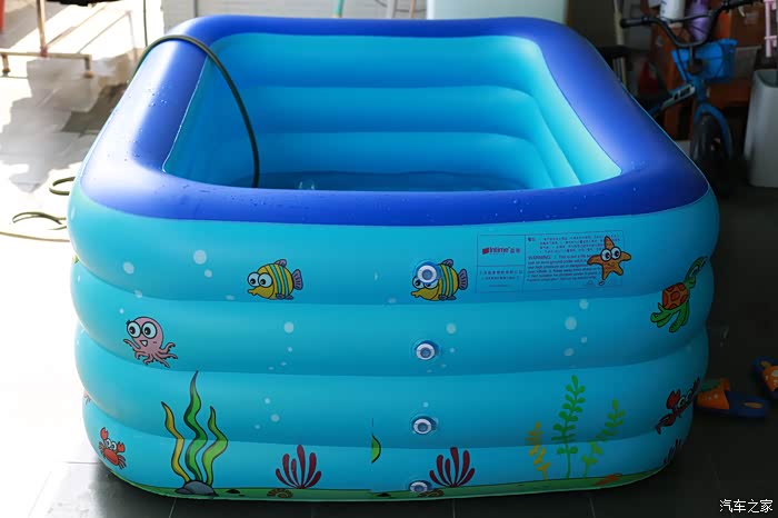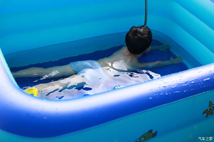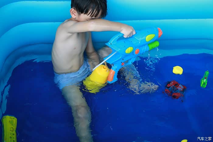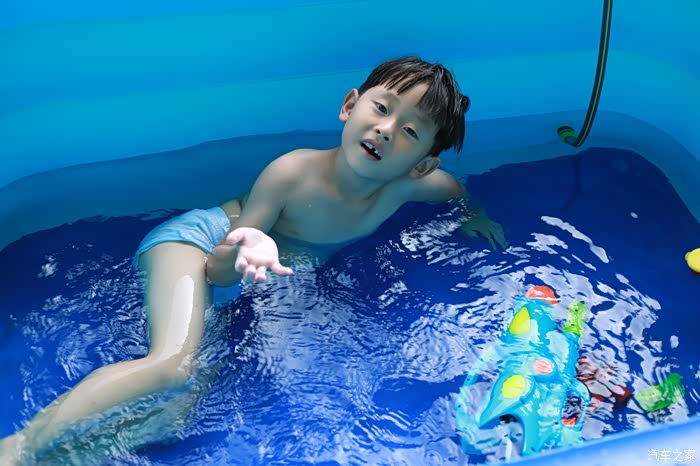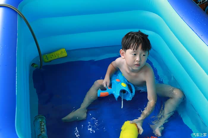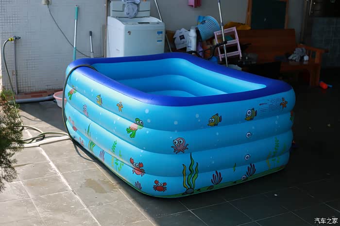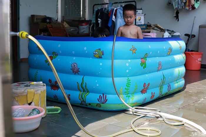 今年的暑假对于广东来说,是非常炎热的。小区的游泳票都买了包月的,不过由于游泳池人太多,水质自然不是那么的理想。于是,和邻居商量,买了个小型充气游泳池,放在他家里的楼顶平台上玩耍。当然了,他家的电动充气泵也是我赠送的汽车之家那套工具箱。站在他家楼顶上,外面真是热的不得了,住顶楼的确也难受啊。