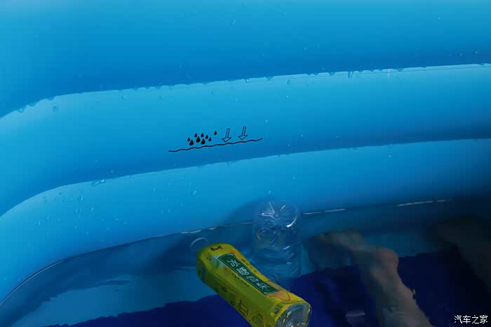 在充气游泳池的内侧,是有个水位警戒线的,不能把水放太满了,不然会因为压力太大而撑破泳池。所以这个一定注意。