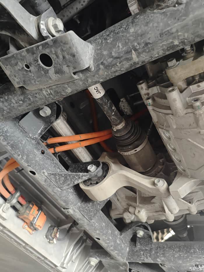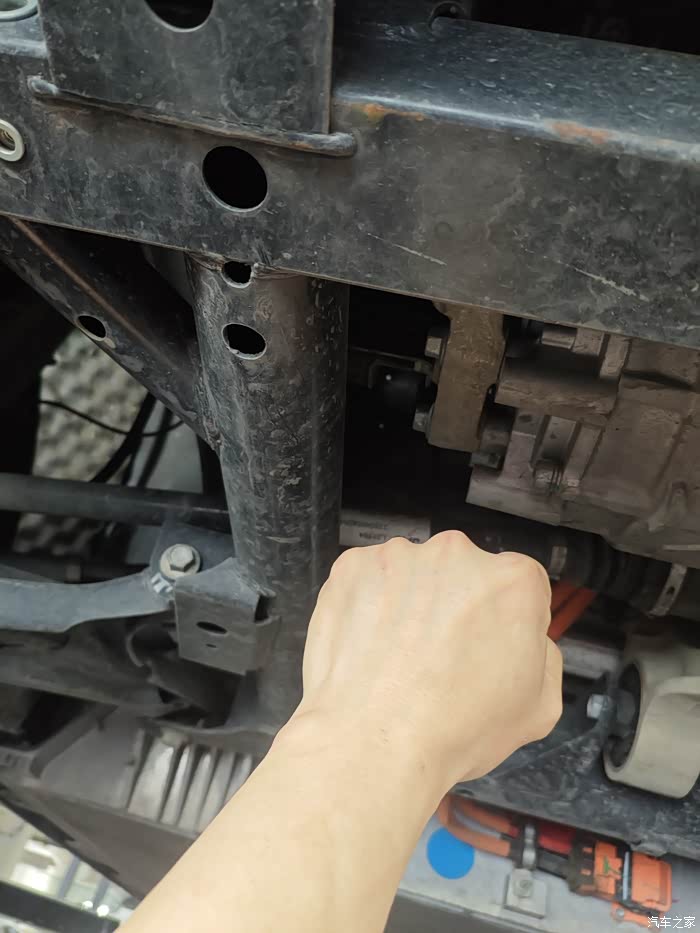 3.前面全框式副车架,全框式,全框式...更关键的是车架用料是圆形钢管,关键的是圆形钢管直径目测前面,侧面有50毫米,更关键是的后面圆形钢管直径有60毫米(比我手腕都粗),江淮钇为3车身用料是真的舍得下本啊,我服了...