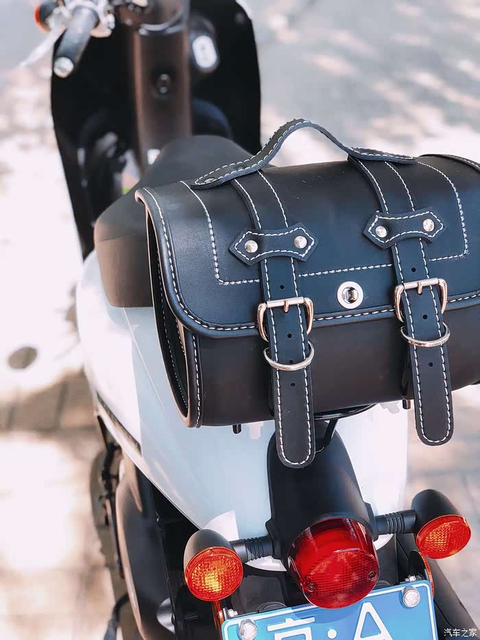 ▲2018 07 09 在街上看到有骑Vespa挂了皮制小尾箱瞬间被种草,耐不住自己去搜了一款黑色皮白线的迷你小尾箱(RMB400+)回来用粗扎带捆在了车尾,觉得比原厂的塑料尾箱好看许多呢!不过这枚尾箱的质量一般,经常开合有些五金件也开始松动了,也装不了很重的物品。看来只是个样子货,真要实用还是得买上千的,或者就装原车尾箱。