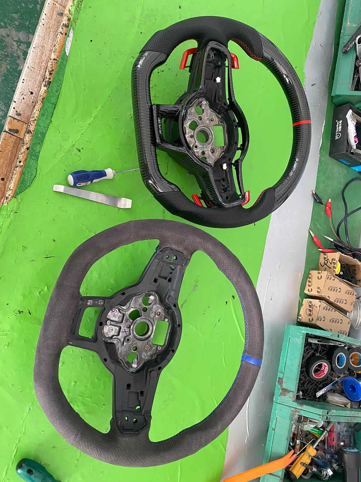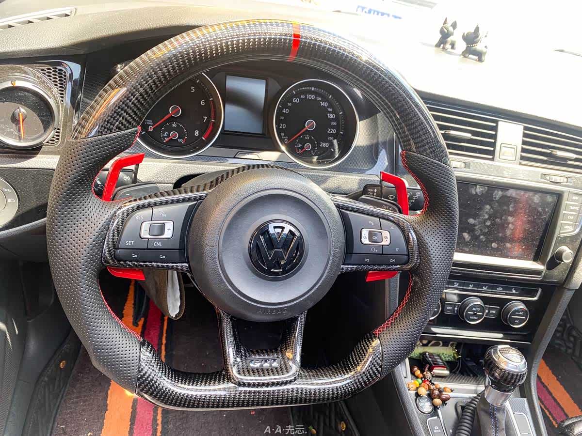 内饰没怎么改装 原车方向盘 挡把进行碳纤维包裹 更换一对蓝色安全带 还有一款difu涡轮表