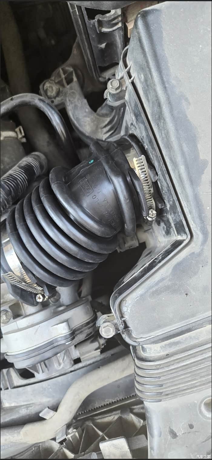 前几天清洗egr,偶然间发现连接空气滤盒和节气门的软管开裂,在网上买了新的配件还没送到,因为急着用车就临时用电工胶布粘了一下,车子开起来和之前最大的区别就是变得贼有劲,油门轻轻一踩就上了80码,但油耗也很感人,跑起来接近12个油。