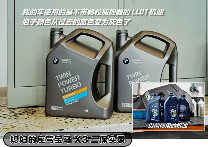 和首保一样,这次更换的机油也是选择最普通的5W-30全合成机油,我的车不带颗粒捕捉器,所以更换的是LL01机油,瓶上不带GPF标志,但瓶子颜色也是灰色的,以前是蓝色的(具体看后面的图片)。