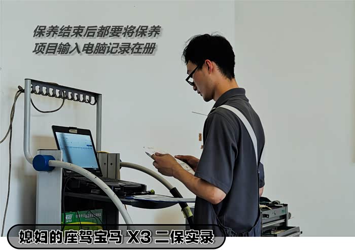 首保时我是带着相机进入车间全程拍摄,这次保养我是故伎重演想进入车间拍摄,可被车间主任给挡住了,我就找到了上次接待过我的那个美女接待,还好她还认识我,在她的帮助下我才顺利进入车间全程拍摄。