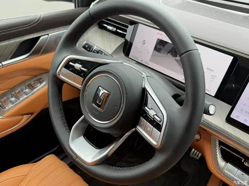 新款的坦克500 Hi4-Z变成了怀挡设计,就在方向盘右边。平时开车换D挡、R挡,手不用离开方向盘,轻轻拨一下就行。遇上堵车频繁换挡的时候,确实方便不少,不用再伸手去够中控台那边。