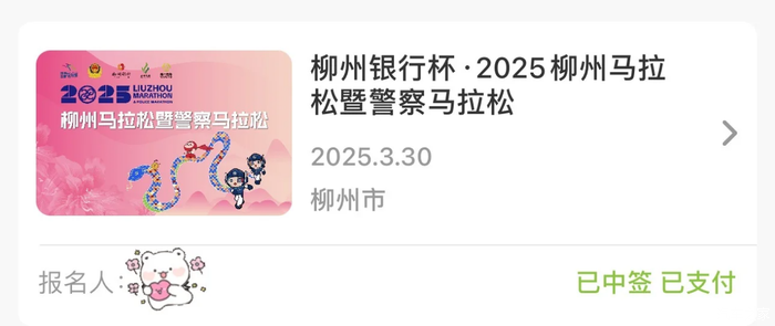 这次终于轮到我了吧!看在可以在柳州过正宗三月三的面子上,我就不哔哔这个回家日的邀请来得这么晚了。这回,还和对象一起拿到了2025柳马欢乐跑参赛名额,平常老说我跑得慢,看我在赛道上怎么碾压丫的。