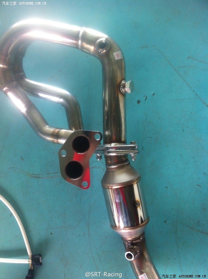 首先是排气部分。芭蕉和头段选用HKS的R-SPEC套件,4-2-1等长布局,有利的提升了中低转速时的扭力输出区间和反应,头段三元催化被HKS的高性能运动催化给取代了,同时养传感器被移到了催化后方,在催化前则预留了一个连接空然比感应器的洞口(当然平时是一个螺丝给堵死的)。