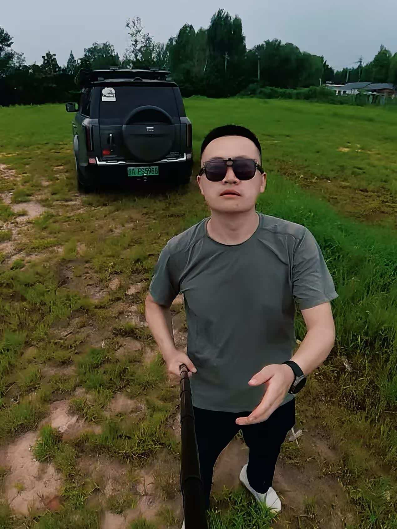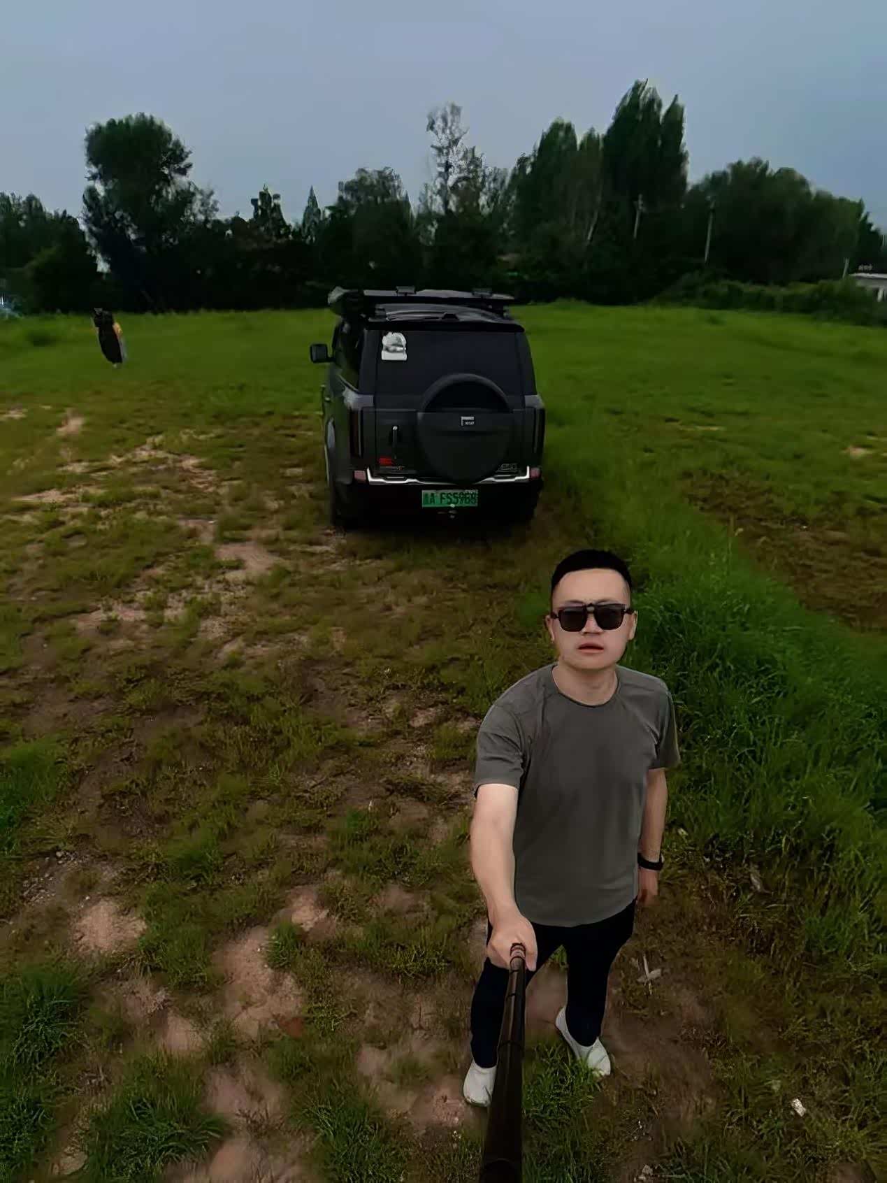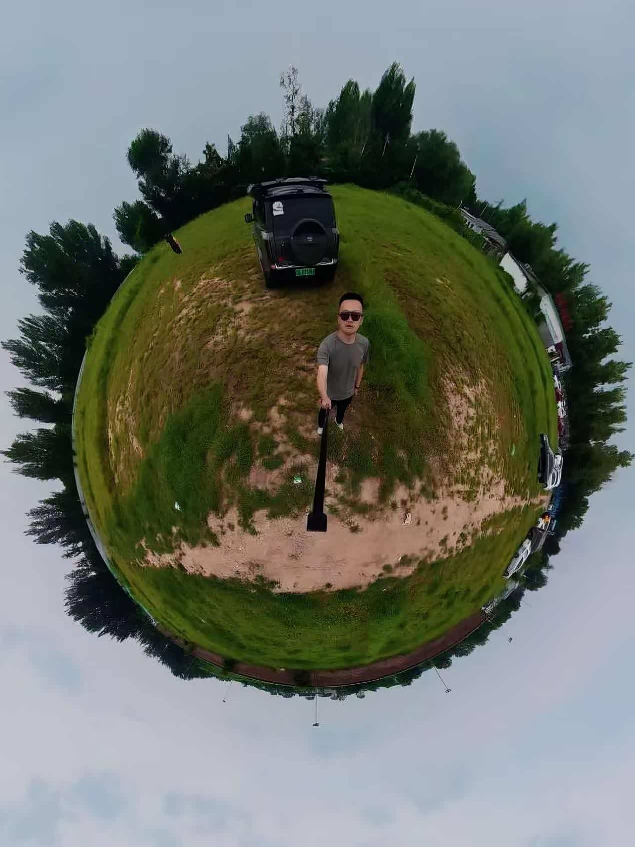 家人带着孩子先去玩水,我则和大石头解锁拍照新视角。特意把车停在了相对开阔的地方,用自拍杆举起机器多给大石头来几张帅照,镜头是圆形的所以拍出来的照片是弧形的,可以调节超广角和广角和无畸变,一开始只是视觉不适应,多把玩几次就好了。