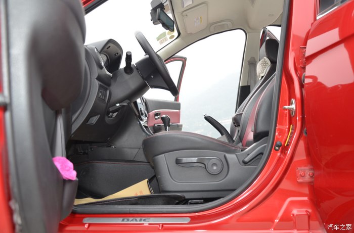 整个内饰都是红黑配色的,还是很好看,前排座椅空间可调范围很大,也很富足