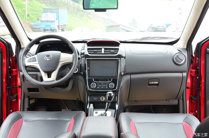另外对于内饰的配色和布局我觉得真心很好,很简洁明了,没有太多复杂突兀的设计,红黑配色的主色调看上去也很显档次,另外车里面也有不少的真皮装饰。