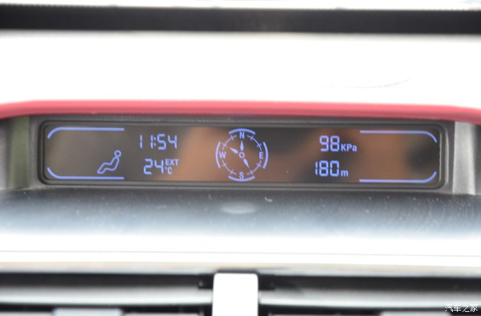 中控台上方的液晶显示条,能显示时间,气压,海拔,温度以及指南针,当需要吐槽一点的就是光线较强的时候很难看得清。