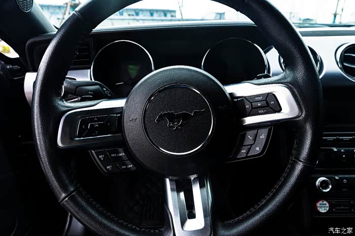 如果单看外观的话我还着实有些羡慕野马的造型内饰的话就完全提不起兴趣了,03+大面积的翻毛皮真的很凸显高级黄色的装饰缝线真的是点睛之笔,布局干劲整洁,双屏的科技感十足,野马的内饰就非常有美国人的风格了,野马的定位是偏亲民的,作为有60年历史的跑车内饰上确实比领克这个新品牌有更多的传承感,但是观感实在太粗糙而且中控屏非常的难用,方向盘的造型也能看出两车的定位03+粗壮平地的方向盘很战斗很运动一摸上去就有让人想要激烈驾驶的欲望,野马方向盘尺寸要大些而且很细也符合人们心中巡航车的定位。