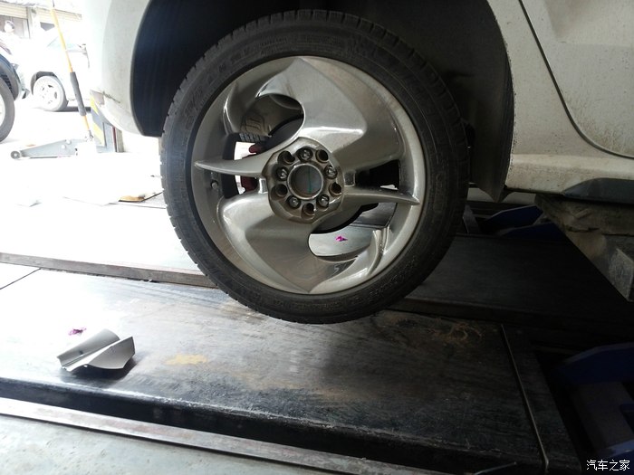 左前轮,依旧伤痕累累,轮毂盖也飞了