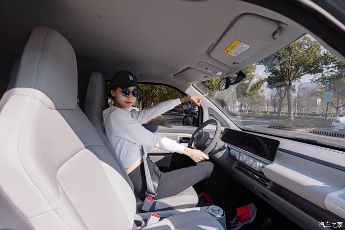 安娜表示这种舒适的环境是她非常看中的,没去过安娜家,只能从五菱Air ev晴空上来佐证了,“极简风”双色主题内饰设计,第一眼就给人感觉很有层次,白色又是一个很能凸显车内空间的颜色,所以坐进车内没有任何压抑感,反而是清新、淡雅。仪表盘则是采用了陶瓷白,在细节处采用了金属的勾勒,很有质感,圆形的方向盘也给人感觉萌萌的很可爱,说到这,用“+”和“-”来代表电门踏板和刹车踏板则更是天马行空,乐趣十足。可以说,五菱Air ev晴空为营造一个舒适的座舱空间已经尽力了。