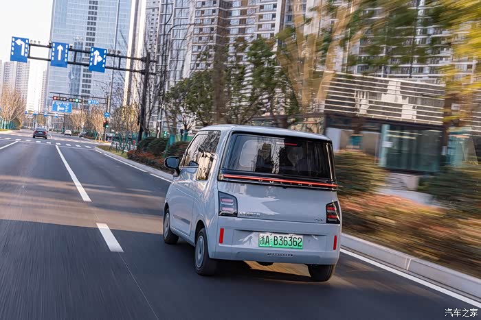 还有就是它虽然小,但是却很精致以及有质感,低饱和度的灰色现在可是各种服装、潮流品牌所常用的配色,而且它的车头还搭载了一个贯穿式的LED灯带,并且延伸到了后视镜上,很有辨识度。会发光的五菱车标则是点睛之笔了,给人感觉萌萌哒,而且,在我印象中,这可能是新能源汽车里首次采用这种形式来展现车标的。说实话,五菱虽然是一个传统汽车品牌,但是这几年在设计方面,确实是非常具有想象力,很大胆!而这应该也是为什么越来越多的年轻人选择它的原因吧~