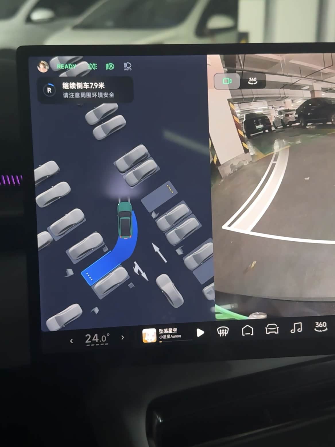 第二次我一个人尝试自动泊车,车位较窄时他还提醒我可以离车泊入,暂时还未尝试。