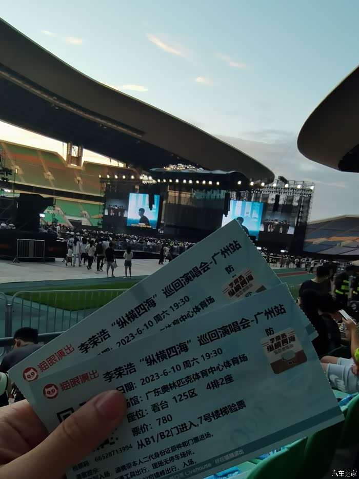 年初时就被《乌梅子酱》疯狂洗脑了,终于在2023年6月10日等来了李荣浩广州场的演唱会。历经千辛万苦从网上抢到2张票,我和老婆就十分期待这次演唱会了。演唱会声音比较大,不适合小朋友去观看。将小炸毛交给家里人照顾后,我们两公婆就启程了。可想说爱你不容易呀,从家里出发到广州奥林匹克体育中心要150公里,2个小时的车程。