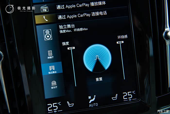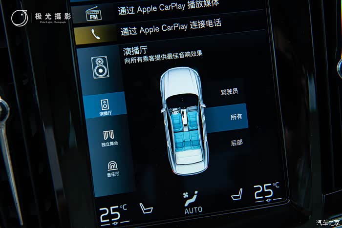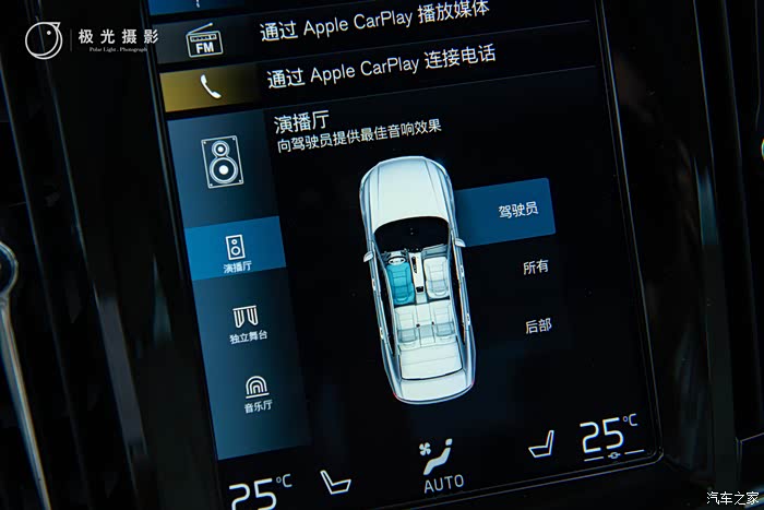 搭载了宝华韦健的S90是最美的,因为它是移动的音乐厅。车上有3种播放模式,演播厅模式可以选择最佳欣赏位置,有"驾驶位最佳“、”所有最佳“ 和 ”后排最佳“ 选择。我的体验是 演播厅模式 最接近我们平时听CD的感觉,也就是最常见的音效模式。我平时开车都是使用演播厅模式,自己开车就选择驾驶员最佳; 如果载上老婆和女儿,就选择所有最佳。